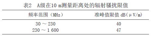 根據鐵路客運專線標準規定,傳導騷擾限值和輻射騷擾限值如表1、2所示。