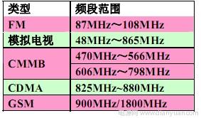 EMI主要通過PCB的走線、通孔和揚聲器的連線向外輻射,較大能量的EMI輻射需要一個“高效率”的天線,對不同的頻率,一個有效的天線長度是該頻率波長的四分之一(λ/4),小於這個長度,就不能形成有效的對外輻射。對30MHz的頻率,采用一般的FR4的PCB板,天線長度需要大於114.1cm才能形成有效的輻射。所以在手機上采用D類放大器時,在放大器輸出的PCB走線和揚聲器連線上的方波邊沿變化是EMI的最重要來源。特別是手機應用中所關心的一些頻段,如下表所示:基本都在100MHz以上,因此我們需要特別地關注由方波邊沿變化所引起的EMI輻射。