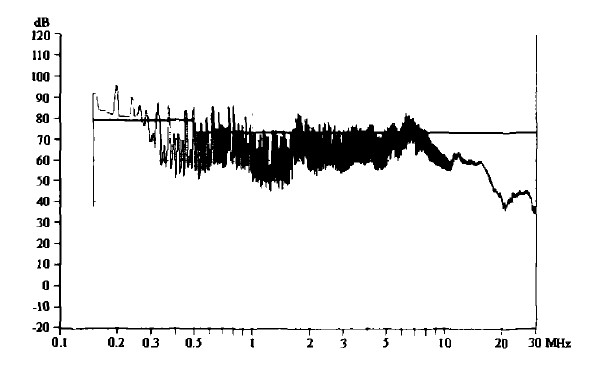圖6進線電抗器+EMI濾波器後所測的傳導騷擾