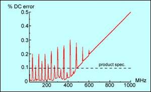 進行穩定度及線性測試時,在輸入端注入小的但上升沿極陡 (《1ns) 的方波信號(也可以通過電容饋送到輸出端和電源端),方波的基頻必須在電路預期的頻帶內,電路輸出應用100MHz(至少)deshiboqihetanzhenjinxingguochongjihezhenlingjianzha,duiyinpinhuoyibiaodianluyeyingruci,duigenggaosumonidianlu,yaoxuanqupindaigengkuandeshiboqi,tongshizhuyishiyongtantoudejiqiao。