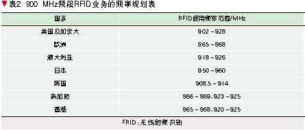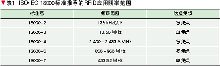 表1為國際標準ISO/IEC 18000標準係列中推薦RFID設備使用的頻率範圍。