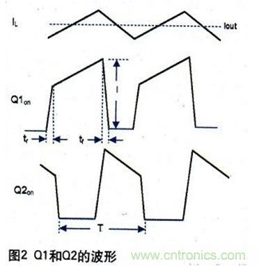 當Q1關斷、Q2導通時,就形成了第二個回路。之後存儲在L1內的能量流經輸出電容器和Q2,如圖5所示。這些回路麵積控製對於降低電磁幹擾是很重要的,在PCB走線布線時就要預先考慮清器件的布局問題。當然,回路麵積能做到多小也是有實際限製的。