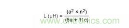 式中,a為線圈的平均半徑,單位為英寸;n為匝數;c為線圈磁芯的寬度(rOUTER - rINNER),單位為英寸。當線圈的c  > 0.2a時11,該計算方法的精度在5%之內。