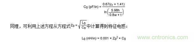 舉例說明,假設PCB厚度為0.0625in (h = 62.5 mil),1盎司覆銅引線(t = 1.35 mil),寬度為0.01in (w = 10 mil),采用FR-4電路板。注意,FR-4的εr典型值為4.35法拉/米(F/m),但範圍可從4.0F/m至4.7F/m。本例計算得到的特征值為Z0 = 134Ω,C0 = 1.04pF/in,L0 = 18.7nH/in。