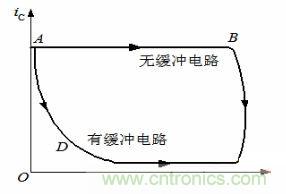如圖所示增加吸收電路後開關管上的電流、電壓波形與沒有吸收回路時的波形比較。