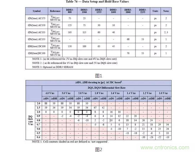 以DDR3信號為例,在JEDEC規範中規定了一個建立保持時間的基準值(圖1),還有就是derating值(圖2),兩者之和就是所需的建立保持時間。