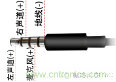 2、耳機采用的是蘋果標準接口,蘋果耳機接口圖如下,從圖中可以看出HP_MIC在耳機母座最外麵一個腳,金屬彈片正好裸露在外麵,極易受靜電影響。