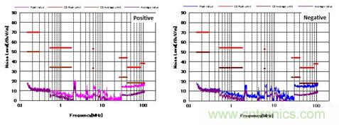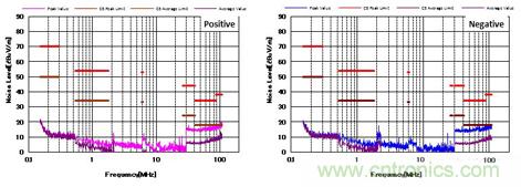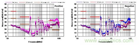 圖8 C5標準下的噪聲特性(帶CM,DM濾波器以及屏蔽罩)