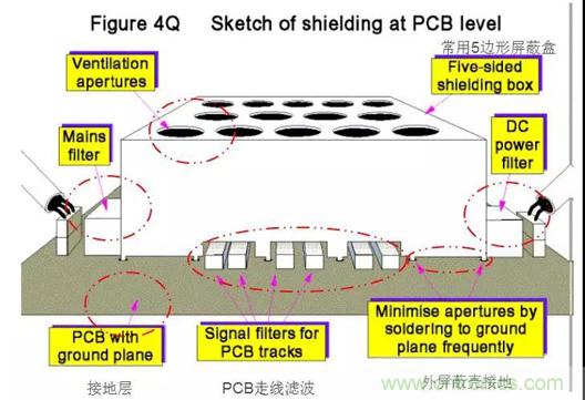 1、使導線及元器件盡量靠近一塊大的金屬板(這個金屬板不是指屏蔽體)