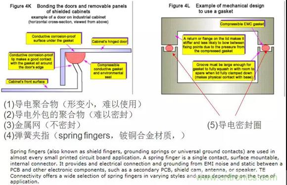 要達到40dB的SE,通常需要用導體墊圈、彈簧夾指來進行密封,注意內部元件與屏蔽罩的間距、數據總線與開孔和縫隙之間的距離。