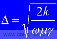 工程上定義從表麵到電流密度下降到表麵電流密度的0.368(即1/e)的厚度為趨膚深度或穿透深度Δ: