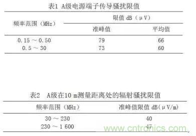 根據鐵路客運專線標準規定,傳導騷擾限值和輻射騷擾限值如表1、2所示。