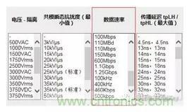 無論是光隔離、磁隔離或是電容式隔離,隻要在適當的條件下工作都可以達到很出色的隔離效果。下圖是一個三種隔離技術的簡單比較: