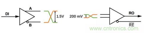 當RS-485芯片接受到差分電壓大於200mV時,RO腳輸出低電平,而本身DI可以輸出1.5V的差分電壓。因此有足夠的餘量來支持長距離傳輸以及各種環境噪聲的幹擾。