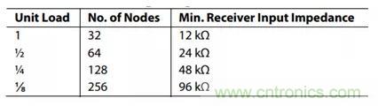 圖4:RS-485接收器的輸入阻抗和負載數量