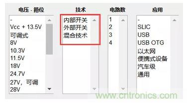 你可以訪問Digi-Key浪湧抑製IC,選擇相關的器件。Digi-Key網站提供豐富的參數選項供選擇,下圖中「外部開關」指的是器件外部需要另加開關(比如MOS管),而該芯片一般是起到控製作用。而「內部開關」指的是保護電路的開關在芯片的內部。