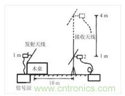 現將同一信號源分別放置在泡沫桌(如圖 6 所示)和木桌(如圖 7 所示)上,接收天線在距離信號源 10 m 處分別測量輻射騷擾。