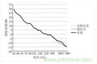 然後分別在采用泡沫桌和木桌情況下測得另兩組場地衰減數據,如圖 3 和圖 4 所示。