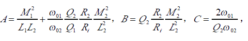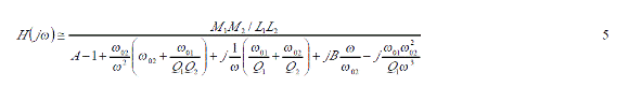 這裏ω 01與ω 02(ω02》ω01)分別是由發射線圈 LC諧振回路與待測 LC諧振回路的諧振角頻率,實際應用時 Q2在100左右,而 Q1小於1。此時式3可簡化為: