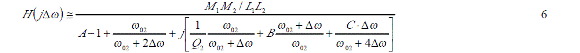 如果實際工作角頻率與待測諧振角頻率間的角頻率差 Δω控製在遠小於 ω02,這樣可以無視 Δω的高次項,式5可以作進一步簡化。