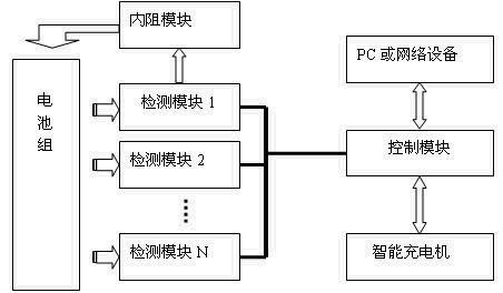 如圖3-1所示,裝置由控製模塊、檢測模塊、內阻模塊、相(xiang)關(guan)軟(ruan)件(jian)和(he)輔(fu)助(zhu)部(bu)件(jian)構(gou)成(cheng),一(yi)個(ge)控(kong)製(zhi)模(mo)塊(kuai)可(ke)接(jie)入(ru)多(duo)個(ge)檢(jian)測(ce)模(mo)塊(kuai),完(wan)成(cheng)對(dui)不(bu)同(tong)隻(zhi)數(shu)和(he)不(bu)同(tong)電(dian)壓(ya)規(gui)格(ge)的(de)蓄(xu)電(dian)池(chi)組(zu)的(de)監(jian)測(ce)管(guan)理(li),可(ke)同(tong)時(shi)管(guan)理(li)多(duo)組(zu)蓄(xu)電(dian)池(chi)。
