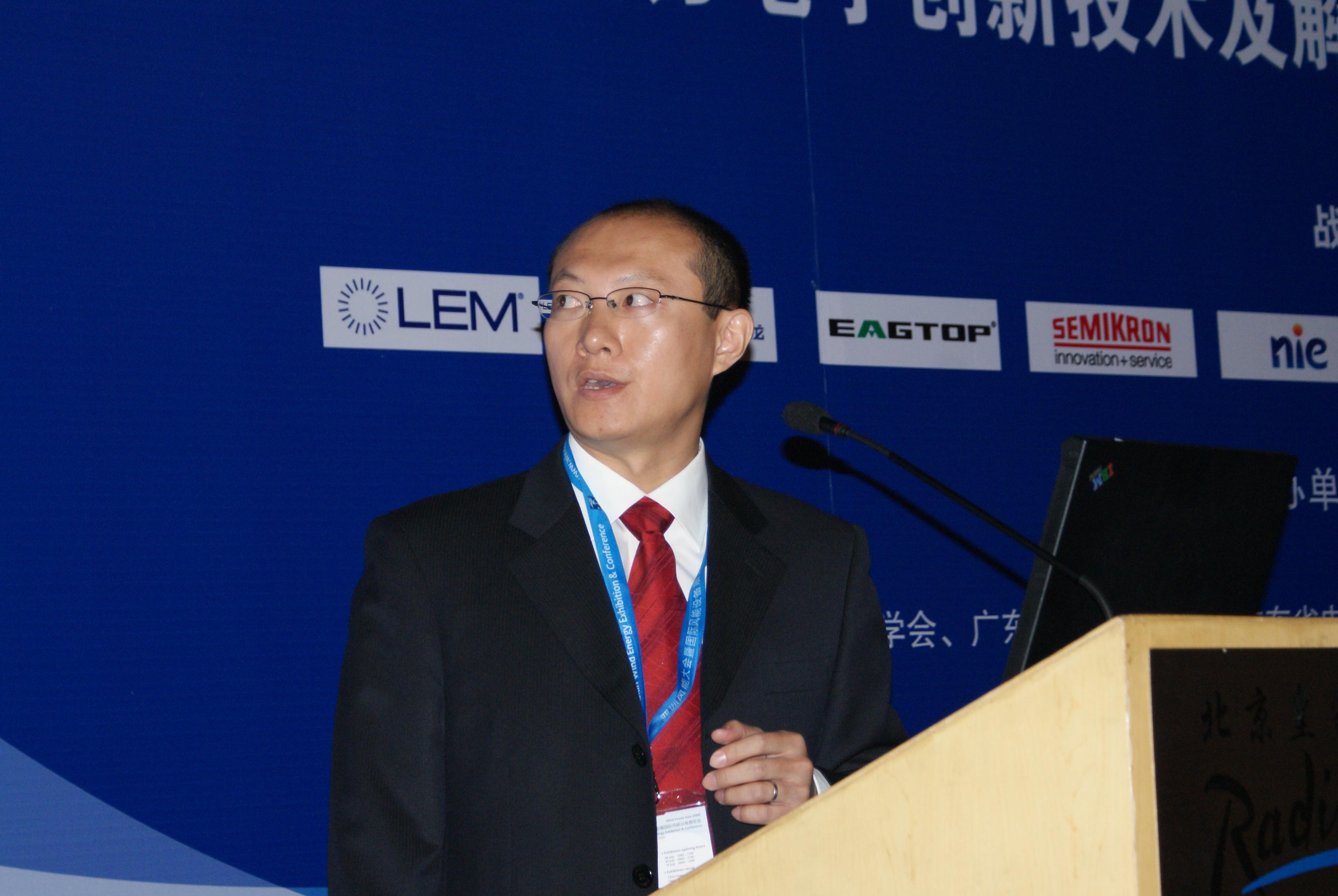 肖xiao向xiang鋒feng先xian生sheng指zhi出chu,能neng源yuan緊jin缺que已yi成cheng為wei當dang今jin突tu出chu的de世shi界jie問wen題ti,大da規gui模mo開kai發fa利li用yong可ke再zai生sheng能neng源yuan,已yi成cheng為wei各ge國guo能neng源yuan戰zhan略lve的de重zhong要yao組zu成cheng部bu分fen,風feng力li發fa電dian技ji術shu成cheng本ben最zui接jie近jin於yu常chang規gui能neng源yuan,因yin而er也ye成cheng為wei產chan業ye化hua發fa展zhan最zui快kuai的de清qing潔jie能neng源yuan技ji術shu。他ta重zhong點dian介jie紹shao了le風feng力li發fa電dian並bing網wang的de關guan鍵jian器qi件jian——變流器,指出變流器對容量、可靠性、響應速度、並網性能都有特殊的要求。他還詳細介紹了變流器所使用的電力電子器件:晶閘管、IGBT以及無源器件等,並對電力電子器件的未來發展趨勢進行了展望,給與會代表上了一堂生動的電力電子器件課。