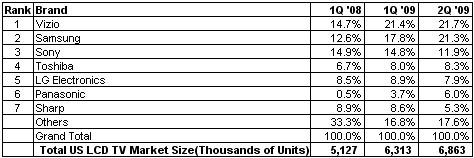 雖然三星奮起直追,但Vizio仍然連續第二個季度成為美國液晶電視市場霸主。