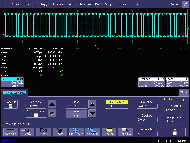 圖13,5MHz時鍾信號在6GHz、1GHz和200MHz等不同帶寬時的測試波形對比