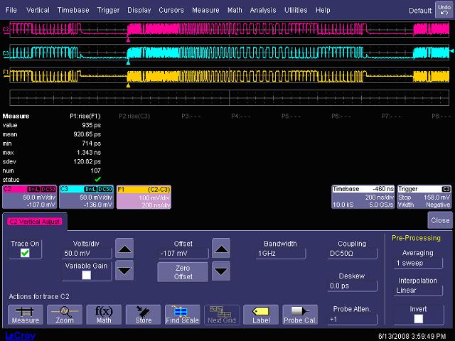 圖16,1GHz帶寬時測試USB2.0 high speed信號的上升時間