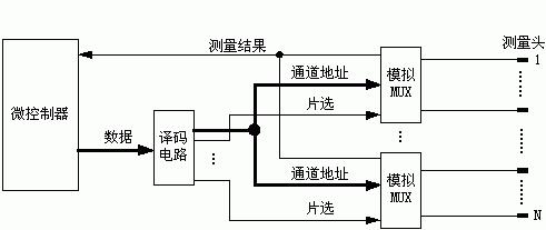 由圖2可見,若以VA作為測量的電壓量,理論上當VA=0時應為通路,VA>0時應為斷路,且VA的值隨兩測量通道之間的電阻值的不同而變化。但由於模擬多路開關本身有不可忽略的導通電阻RON,這樣,在測量通路形成後,若為通路,VA並不等於0,而是等於RON上的電壓降。由於測量的目的隻是獲知通/斷路關係,沒有必要去測量VA的具體值,為此隻需用電壓比較器比較VA是否大於RON上的電壓降即可。設置電壓比較器的閾值電壓等於RON上的電壓降,電壓比較器的輸出就是測量結果,該結果為可直接由微控製器讀取的數字量。