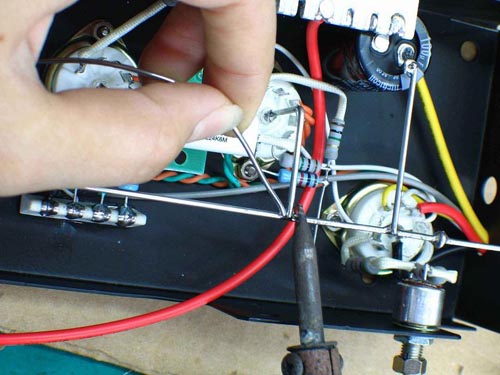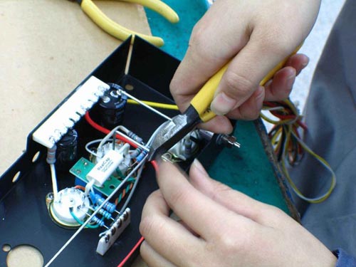 (4)用鑷子轉動引線,確認不鬆動,然後可用偏口鉗剪去多餘的引線。