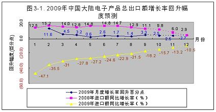 2008年(nian)下(xia)半(ban)年(nian),國(guo)際(ji)金(jin)融(rong)風(feng)暴(bao)席(xi)卷(juan)全(quan)球(qiu),以(yi)出(chu)口(kou)為(wei)主(zhu)導(dao)的(de)中(zhong)國(guo)大(da)陸(lu)電(dian)子(zi)信(xin)息(xi)產(chan)業(ye)直(zhi)接(jie)受(shou)到(dao)衝(chong)擊(ji),產(chan)品(pin)進(jin)出(chu)口(kou)受(shou)阻(zu),導(dao)致(zhi)產(chan)品(pin)產(chan)量(liang)不(bu)斷(duan)下(xia)降(jiang),到(dao)今(jin)年(nian)元(yuan)月(yue)份(fen)下(xia)降(jiang)到(dao)穀(gu)底(di)。由(you)於(yu)中(zhong)國(guo)政(zheng)府(fu)及(ji)時(shi)實(shi)行(xing)積(ji)極(ji)的(de)財(cai)政(zheng)政(zheng)策(ce),調(tiao)整(zheng)產(chan)品(pin)結(jie)構(gou),努(nu)力(li)擴(kuo)大(da)內(nei)需(xu),電(dian)子(zi)信(xin)息(xi)產(chan)業(ye)從(cong)2月份開始逐漸回升。雖然在個別月份有所波動,但回升趨勢穩定向好。預計2009年全行業能實現5%左右的增長;進出口額雖然有較大幅度的回升,但仍將呈現負增長;由於政府積極擴大內需,國內市場將繼續保持10%左右的較快增長。