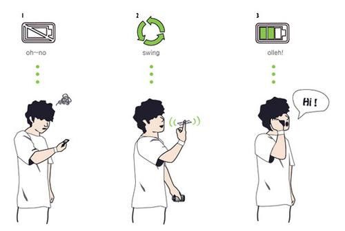 而er近jin日ri筆bi者zhe在zai網wang上shang發fa現xian了le有you意yi思si的de發fa明ming。當dang你ni的de電dian池chi出chu現xian沒mei電dian或huo是shi電dian量liang低di的de時shi候hou,你ni可ke以yi把ba電dian池chi套tao在zai手shou指zhi上shang進jin行xing轉zhuan動dong,對dui電dian池chi進jin行xing充chong電dian。這zhe是shi一yi個ge比bi較jiao有you創chuang意yi的de發fa明ming。