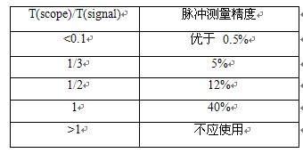 表一, T(scope)/T(signal)與脈衝信號測量精度的關係