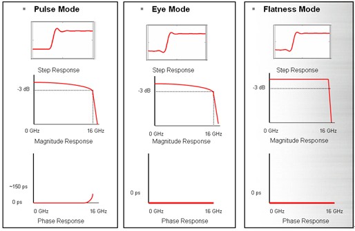 當(dang)今(jin)的(de)高(gao)帶(dai)寬(kuan)數(shu)字(zi)示(shi)波(bo)器(qi)都(dou)會(hui)采(cai)取(qu)某(mou)種(zhong)脈(mai)衝(chong)響(xiang)應(ying)優(you)化(hua)方(fang)式(shi)去(qu)降(jiang)低(di)幅(fu)頻(pin)響(xiang)應(ying)或(huo)相(xiang)頻(pin)響(xiang)應(ying)對(dui)被(bei)測(ce)信(xin)號(hao)的(de)負(fu)麵(mian)效(xiao)應(ying),業(ye)界(jie)應(ying)用(yong)最(zui)廣(guang)泛(fan)的(de)脈(mai)衝(chong)響(xiang)應(ying)方(fang)式(shi)有(you)三(san)種(zhong),分(fen)別(bie)為(wei)Pulse Mode、Eye Mode和Flatness Mode。