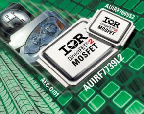 國際整流器公司 (International Rectifier,簡稱IR) 今天推出適用於汽車的AUIRF7739L2 和AUIRF7665S2 DirectFET®2 功率 MOSFET。這兩款產品以堅固可靠、符合AEC-Q101標準的封裝為汽車應用實現了卓越的功率密度、雙麵冷卻和極小的寄生電感和電阻。