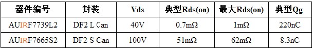 采用新款大罐式封裝的 AUIRF7739L2 具有業內最低的導通電阻,在給定 PCB 區域 40V 電壓時的導通電阻典型值僅為 0.7mΩ 。此外,與 D2PAK 相比,大罐式封裝的占位麵積可以減少60%,厚度可以降低85%。這款器件可提供卓越的功率密度和效率,非常適合高負載電機控製應用,包括電動助力轉向係統 (EPS) 和微型混合動力車的電池開關和集成式起動發電機 (ISA) ,以及底盤、傳動係統和動力係統等。