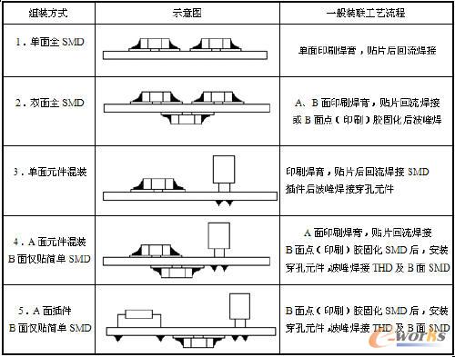 通常針對PCB不同的裝聯密度,推薦的組裝方式有以下幾種: