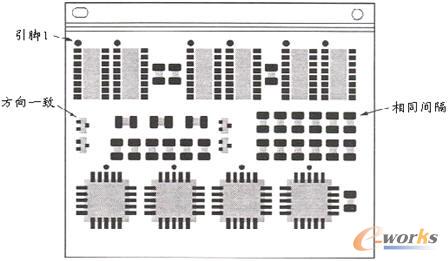 還有,相似的元件類型應該盡可能接地在一起,所有元件的第一腳在同一個方向,如圖3所示。