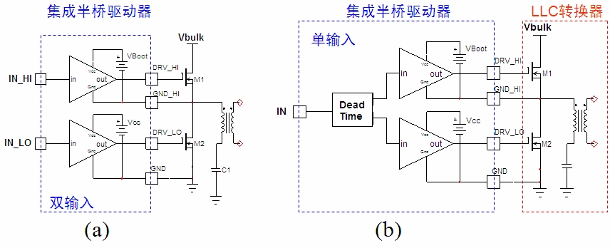與變壓器驅動方案類似,矽集成電路驅動方案也包含單驅動輸入和雙驅動輸入這兩種類型,分別見圖3a及圖3b。不過,這些矽半橋驅動器既能用作高端MOSFET驅動器,也能用作低端MOSFET驅動器。矽芯片高端MOSFET驅動方案采用緊湊、高性能的封裝,在單顆芯片中集成了驅動高端MOSFETsuoxudedaduoshugongneng,zengjiashaoshujigewaibuyuanjianhoujiunengtigongkuaisudekaiguansudu,tigongshuansuoguanbigongneng,shuruzhilingyumenqudongshuchuzhijiandeyanchijidi,gonglvhaosanyejiaodi。