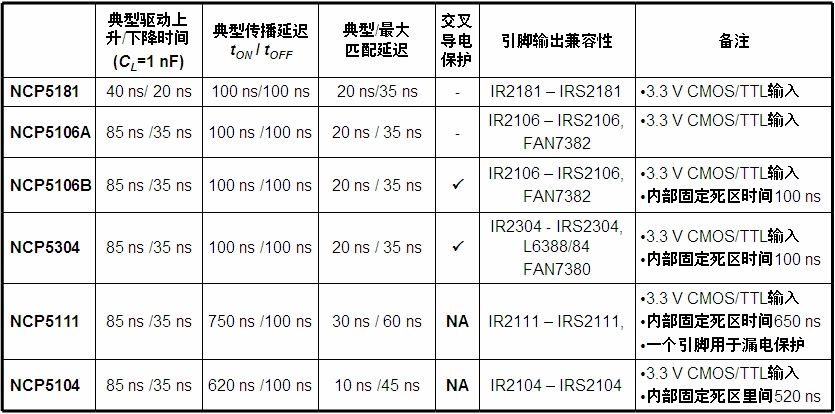 表1:安森美半導體用於高端MOSFET驅動的矽驅動器相互參照。