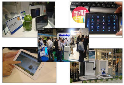 如(ru)下(xia)一(yi)組(zu)圖(tu)片(pian),您(nin)能(neng)猜(cai)出(chu)這(zhe)是(shi)什(shen)麼(me)類(lei)型(xing)公(gong)司(si)的(de)展(zhan)台(tai)嗎(ma)?就(jiu)在(zai)不(bu)久(jiu)前(qian)舉(ju)行(xing)的(de)香(xiang)港(gang)電(dian)子(zi)展(zhan)上(shang),瑞(rui)芯(xin)微(wei)一(yi)口(kou)氣(qi)推(tui)出(chu)和(he)展(zhan)示(shi)了(le)五(wu)十(shi)多(duo)款(kuan)移(yi)動(dong)互(hu)聯(lian)創(chuang)新(xin)應(ying)用(yong)方(fang)案(an),涵(han)蓋(gai)iMID(5英寸屏幕以內)、3G MID(內置3G SIM卡)、平板電腦(中國芯iPad)、智能手機(Android+3G+720P)、電子閱讀器(俗稱電子書)、無線數碼相框等一係列革新性終端產品。盡管這是一家芯片廠商,但它的展位上幾乎看不到芯片的影子。