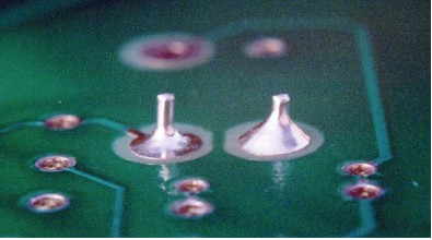 在(zai)波(bo)峰(feng)焊(han)的(de)實(shi)際(ji)使(shi)用(yong)中(zhong),助(zhu)焊(han)劑(ji)的(de)全(quan)板(ban)噴(pen)塗(tu)和(he)錫(xi)渣(zha)的(de)產(chan)生(sheng)都(dou)帶(dai)來(lai)了(le)較(jiao)高(gao)的(de)使(shi)用(yong)成(cheng)本(ben)。尤(you)其(qi)當(dang)使(shi)用(yong)無(wu)鉛(qian)焊(han)料(liao)時(shi),由(you)於(yu)無(wu)鉛(qian)焊(han)料(liao)的(de)價(jia)格(ge)是(shi)有(you)鉛(qian)焊(han)料(liao)的(de)3倍以上,錫渣產生所帶來的使用成本增加是驚人的。此外,無鉛焊料不斷溶解線路板焊盤上的銅,時間一長便會在錫缸中產生晶須(銅),這需要我們不斷添加昂貴的錫銀來加以解決。(見圖4)
