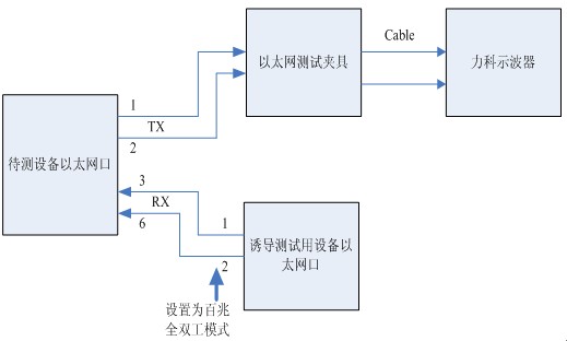 100Base-TX接口的測試采用業內比較通用的誘導發包的方法來引導DUT發出擾碼後的IDLE進行測試,更多細節請參考美國力科公司《Ethernet solution-QualiPHY》專項技術文檔,