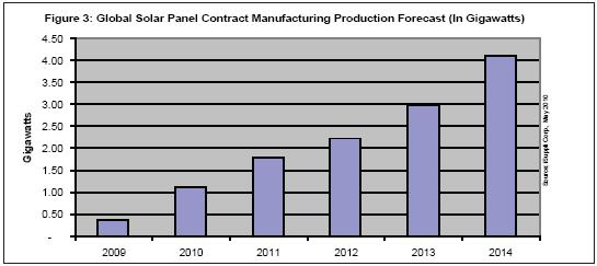 2010年合同製造商將生產1.1GW的太陽能電池板,比2009年時的369MW大增200%。其餘的生產任務將由專門的太陽能電池板廠商以及其它企業承擔。2014年合同製造商生產的太陽能電池板將比2010年增長近三倍,達到4.1GW。