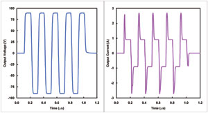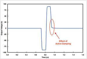 我(wo)們(men)可(ke)以(yi)直(zhi)觀(guan)地(di)理(li)解(jie)超(chao)聲(sheng)波(bo)發(fa)送(song)器(qi)輸(shu)出(chu)的(de)對(dui)稱(cheng)性(xing)要(yao)求(qiu)。然(ran)而(er),這(zhe)裏(li)需(xu)要(yao)深(shen)入(ru)理(li)解(jie)的(de)是(shi)輸(shu)出(chu)信(xin)號(hao)不(bu)必(bi)為(wei)一(yi)個(ge)長(chang)脈(mai)衝(chong)群(qun)。它(ta)可(ke)能(neng)包(bao)括(kuo)一(yi)個(ge)單(dan)正(zheng)極(ji)和(he)負(fu)極(ji)脈(mai)衝(chong)對(dui),脈(mai)衝(chong)對(dui)的(de)前(qian)後(hou)均(jun)為(wei)0V。同樣,信號歸至0V的質量變得至關重要。有時,它被稱為“阻尼”函數(見圖3),並對一些超聲波模式產生巨大的影響,例如,人體非線性為主要信息源的諧波成像等。