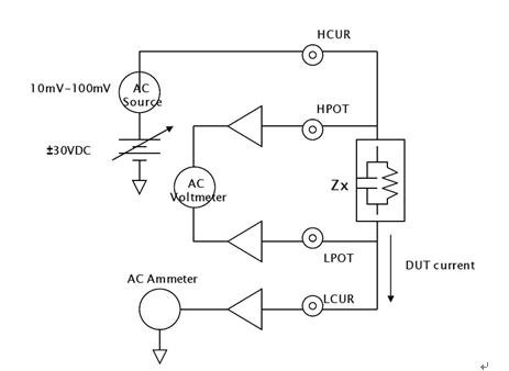 換而言之,這種測試通過加載交流電壓然後測量產生的交流電流、交流電壓和它們之間的阻抗相角,最終測出DUT的交流阻抗。