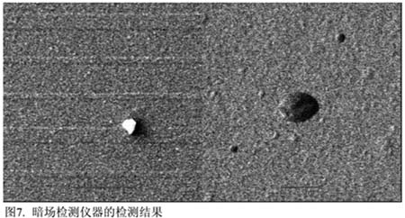 由you於yu暗an場chang檢jian測ce儀yi器qi的de接jie受shou的de更geng多duo的de信xin號hao源yuan都dou是shi有you一yi定ding角jiao度du的de,所suo以yi這zhe種zhong檢jian測ce設she備bei會hui對dui晶jing圓yuan的de表biao麵mian更geng敏min感gan。所suo以yi在zai對dui通tong孔kong刻ke蝕shi後hou晶jing圓yuan進jin行xing檢jian測ce結jie果guo來lai看kan,能neng抓zhua到dao更geng多duo的de是shi表biao麵mian的de微wei粒li以yi及ji通tong孔kong刻ke蝕shi過guo程cheng中zhong的de聚ju合he物wu殘can留liu。所suo以yi暗an場chang檢jian測ce儀yi器qi在zai對dui通tong孔kong刻ke蝕shi檢jian測ce結jie果guo不bu盡jin如ru人ren意yi,它ta隻zhi能neng對dui通tong孔kong刻ke蝕shi過guo程cheng後hou芯xin片pian表biao麵mian的de殘can留liu進jin行xing有you效xiao的de檢jian測ce,可ke是shi對dui於yu通tong孔kong刻ke蝕shi狀zhuang態tai沒mei法fa完wan全quan反fan映ying(如圖7所示)。