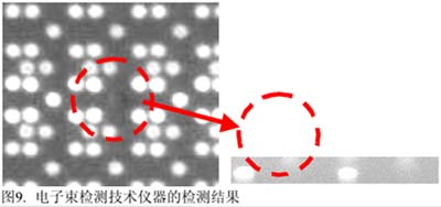 實驗表明通孔刻蝕不足缺陷完全可以被E-scan300檢測到。其不足在於,電子束檢測技術以聚焦電子束作為檢測源,雖然靈敏度極高,但是檢測速度慢、價(jia)格(ge)高(gao),而(er)且(qie)高(gao)靈(ling)敏(min)度(du)的(de)同(tong)時(shi)也(ye)帶(dai)來(lai)了(le)很(hen)多(duo)幹(gan)擾(rao)信(xin)號(hao),在(zai)實(shi)際(ji)生(sheng)產(chan)中(zhong),在(zai)許(xu)多(duo)幹(gan)擾(rao)信(xin)號(hao)中(zhong)找(zhao)出(chu)正(zheng)確(que)的(de)通(tong)孔(kong)刻(ke)蝕(shi)不(bu)足(zu)缺(que)陷(xian)將(jiang)受(shou)到(dao)很(hen)大(da)程(cheng)度(du)的(de)限(xian)製(zhi)(如圖9所示)。