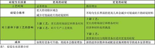 zuihou,ruguoguidingshengchanghexianqiegecaozuozhijiandeshengchanxianpinghengwufaweichi,zongtiguipianshengchanliyehuixiajiang。shengchangengduokezhichengguipiandeguidingcailiaokenenghuizengjiashengchannengliheluzideliyonglv,danruguoxianqiegecaozuowufachulizengjiahoudecailiaohuoboxingyinshu,jiukenenghuichuxianzaizhipin(WIP)瓶頸或降低線鋸利用率,從而導致矽片生產運營的總體生產力下降。影響矽錠生長的因素分析見表1。